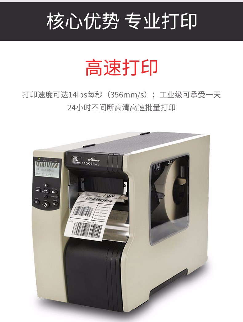 ●打印速度為每秒14英寸/356毫米的110Xi4擁有了市面上最快的技術(shù)之一,能夠有效提升批量打印和即打即用生產(chǎn)線的效率。