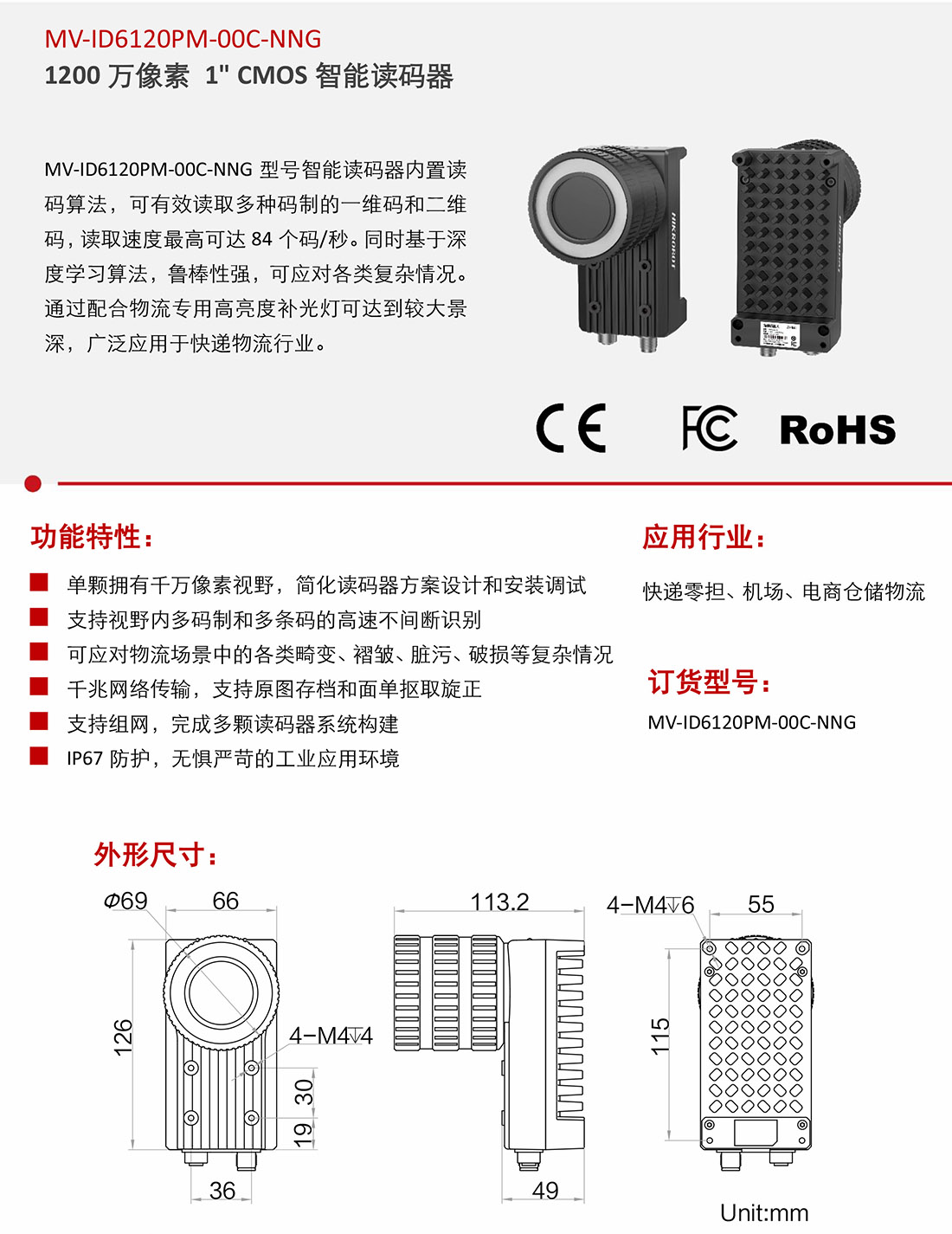 MV-ID6120PM-00C-NNG CMOS智能讀碼器