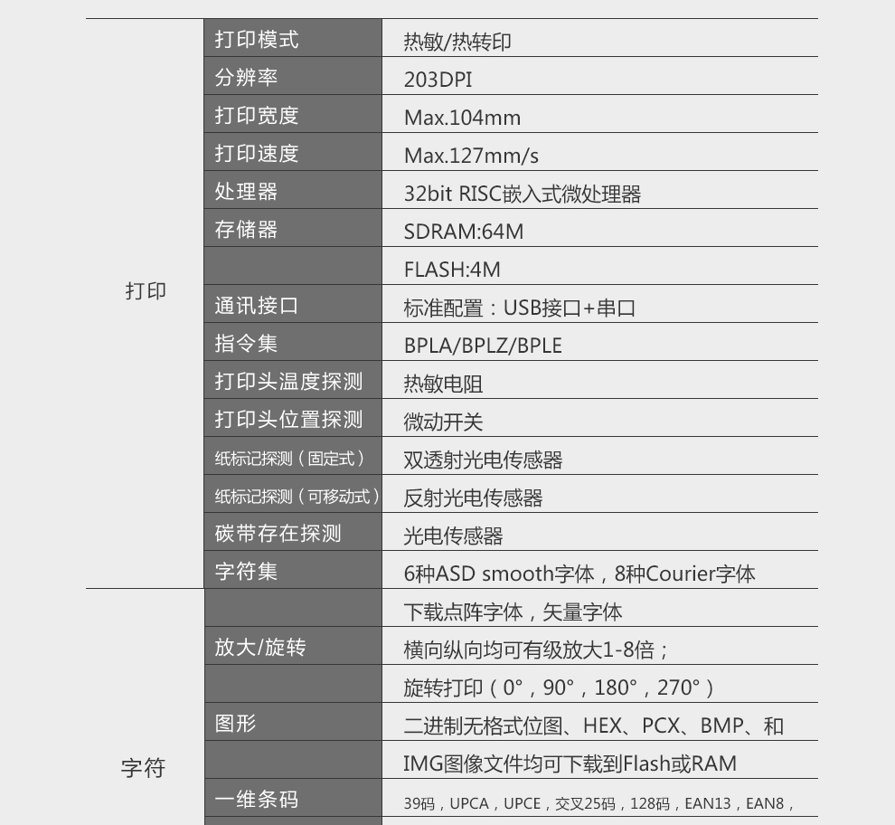 條碼打印機(jī)分辨率 | 203dpi |