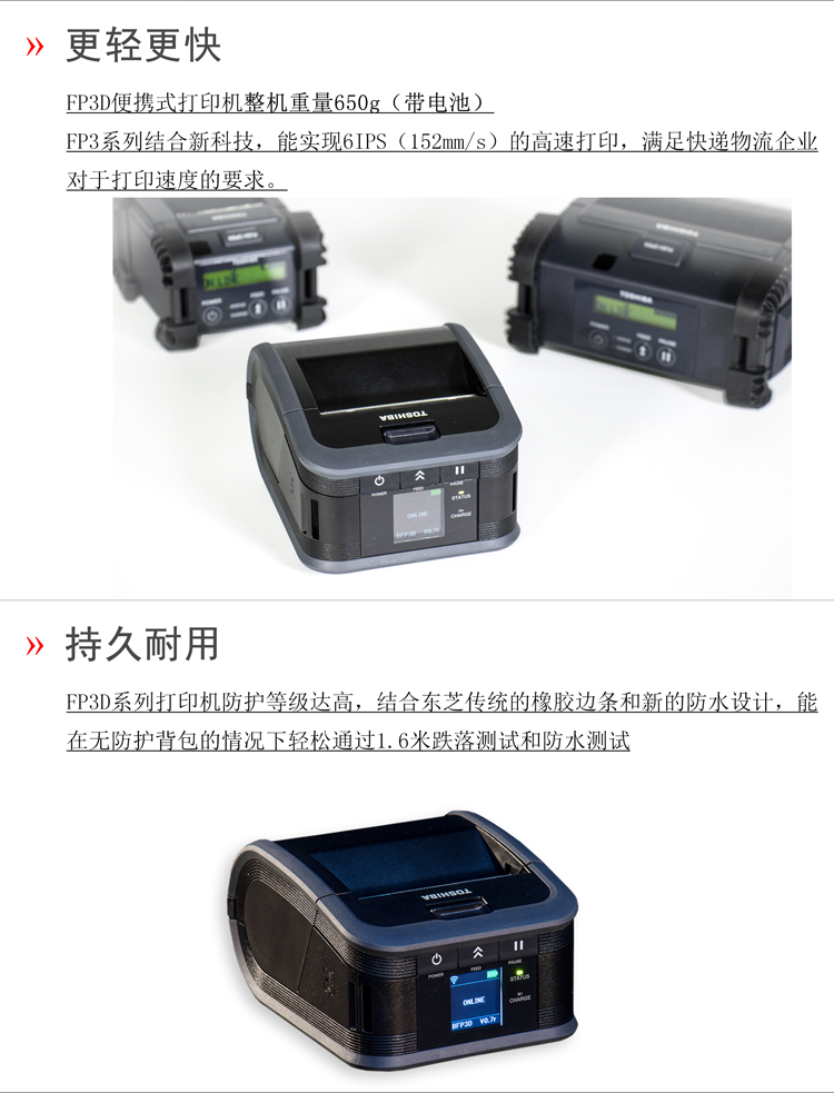 東芝將創(chuàng)新移動(dòng)打印技術(shù)帶到你的手中,F(xiàn)P3D加強(qiáng)版3寸便攜式熱敏打印機(jī),擁有6IPS(152mm/s)高速打印、彩色中文液晶屏、自動(dòng)剝離等技術(shù),蘊(yùn)含著東芝對(duì)于便攜性、可靠性、高性能和創(chuàng)新性的承諾,滿足各類便攜打印的應(yīng)用需求。