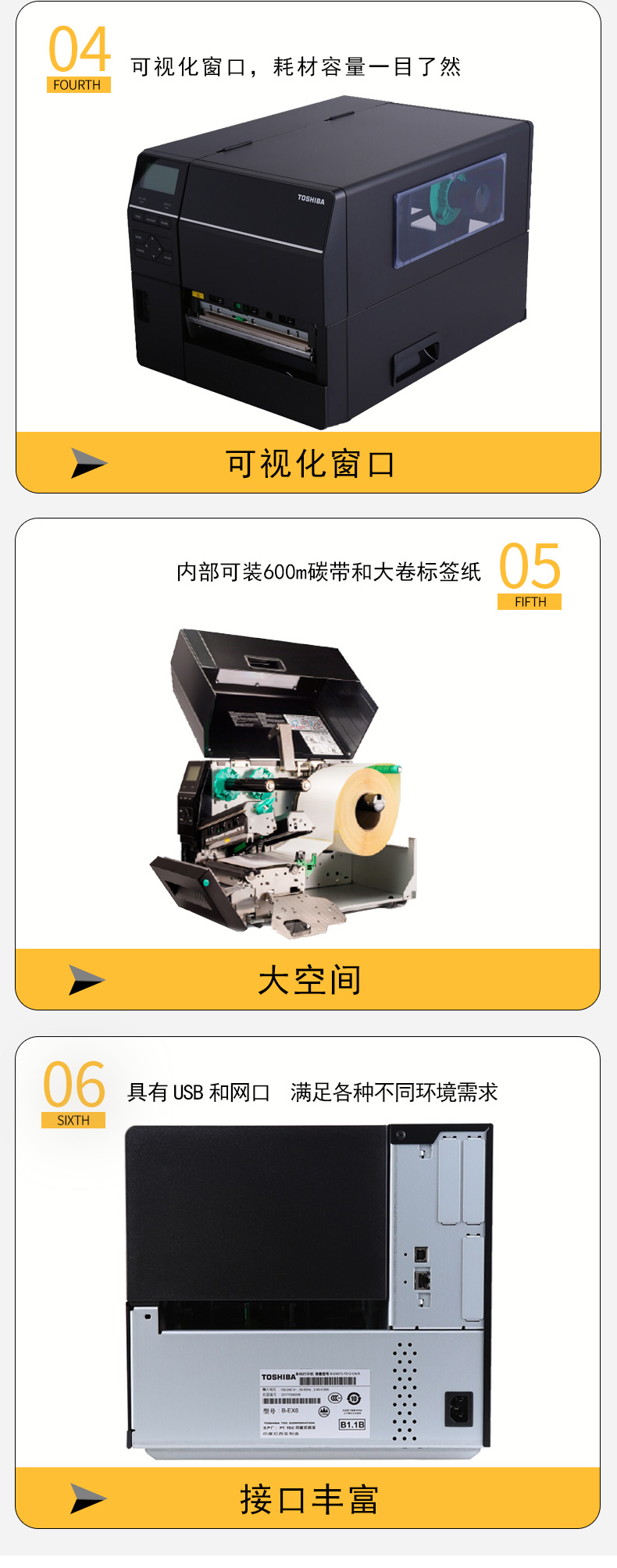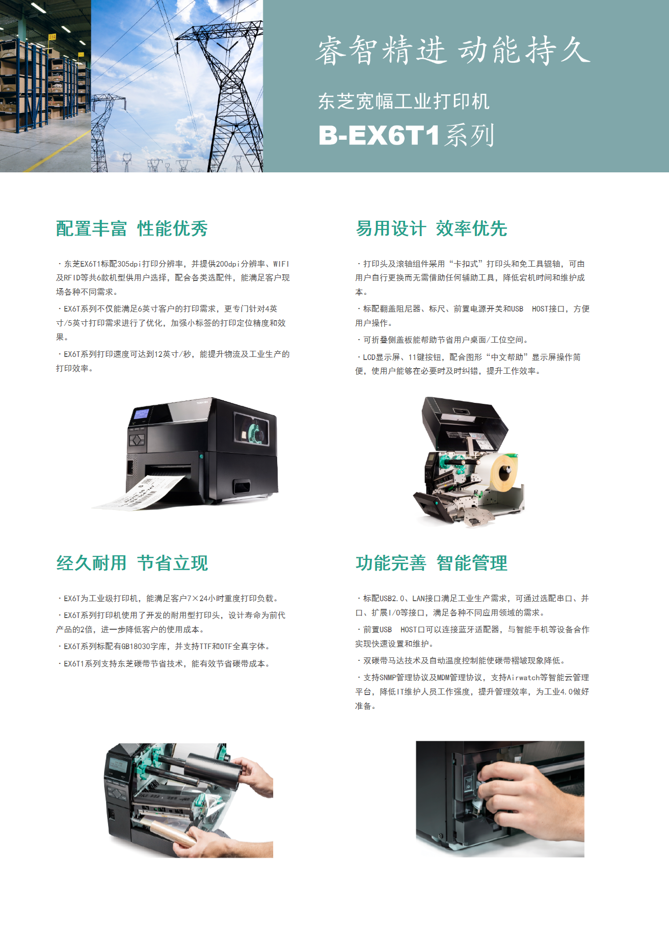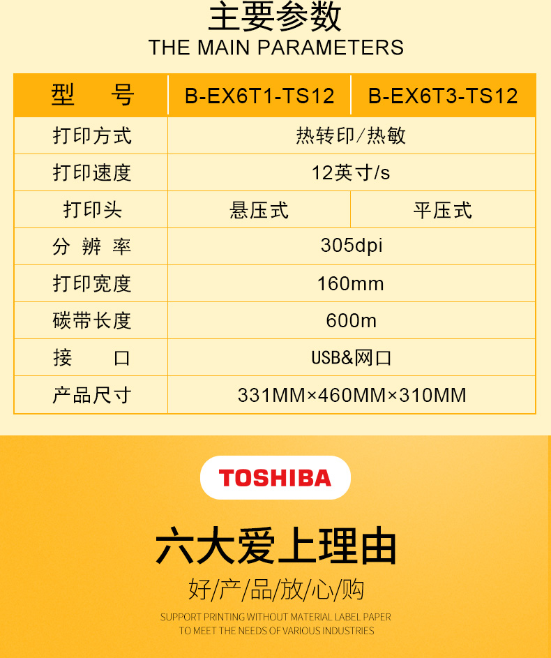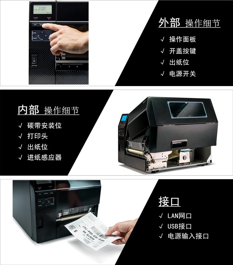 具有12IPS打印速度、結(jié)合先進的打印溫度和步進控制技術(shù),能滿足各類標(biāo)簽打印的需求,懸壓打印技術(shù)和碳帶節(jié)省功能,能極大地降低客戶使用成本,提升投資回報率。EX6T1堅固耐用,結(jié)合RFID及諸多人性化、智能化設(shè)計,提供寬幅工業(yè)標(biāo)簽打印應(yīng)用。